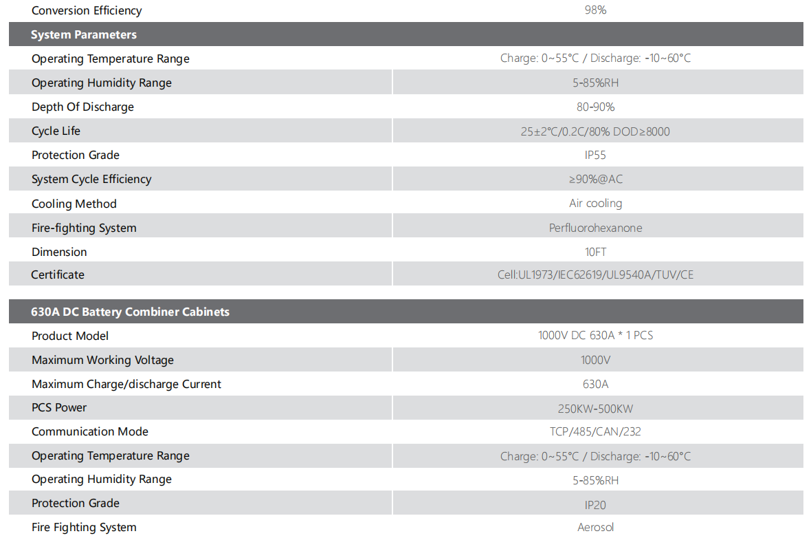 • Grid-Scale Capacity: Provides a rated energy of 645kWh with a powerful 250kW AC output in a 20-foot container.