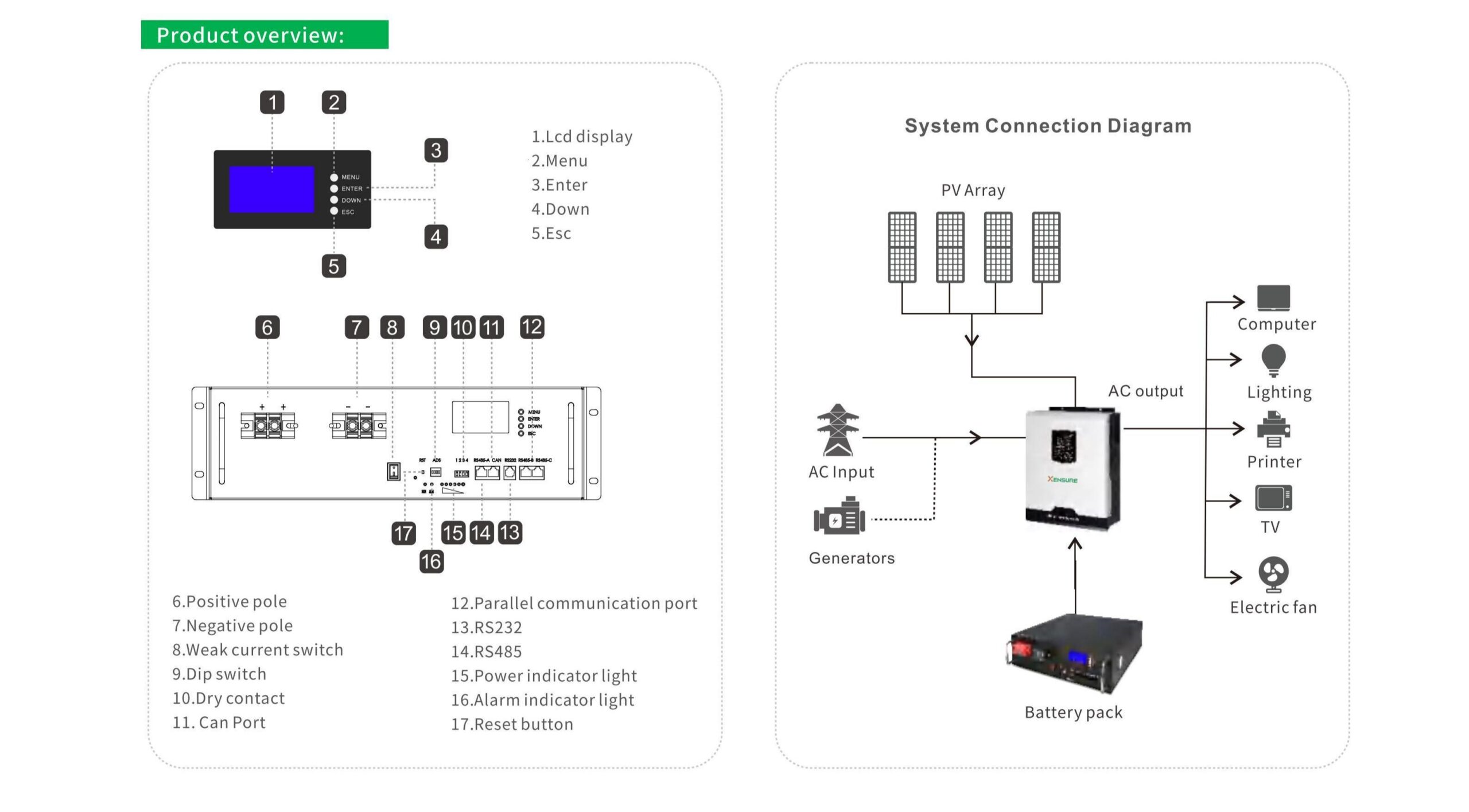 • Comprehensive Connectivity: Fully compatible with mainstream inverters via RS485 and CAN communication.