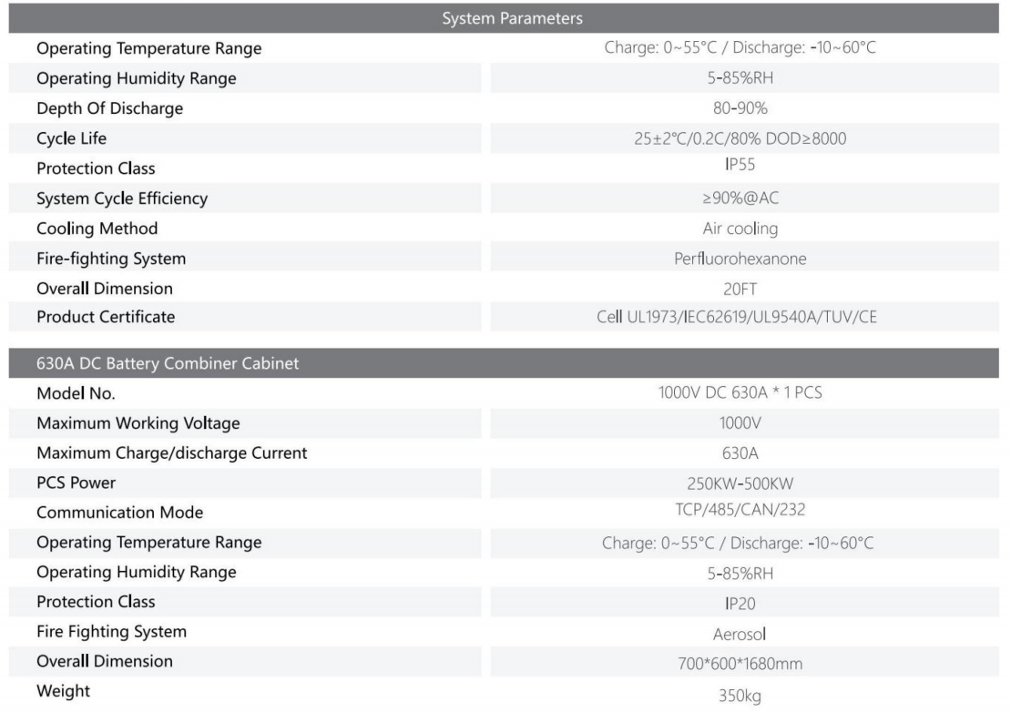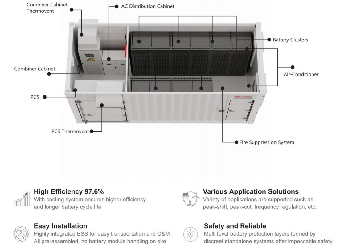 • Grid-Scale Capacity: Provides a rated energy of 645kWh with a powerful 250kW AC output in a 20-foot container.