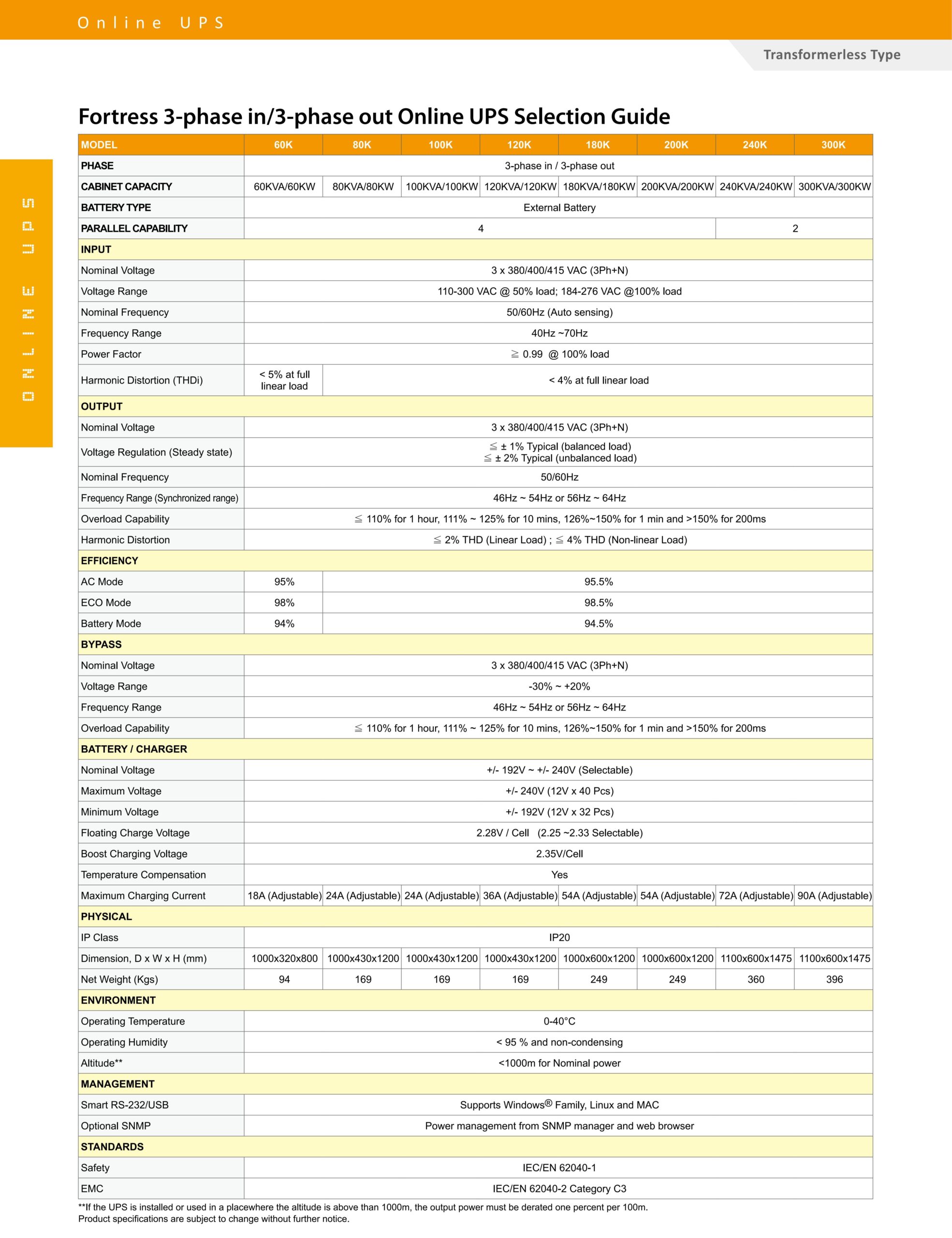 Fortress 3P/3P 60KVA-300KVA with Power Module 60kVA